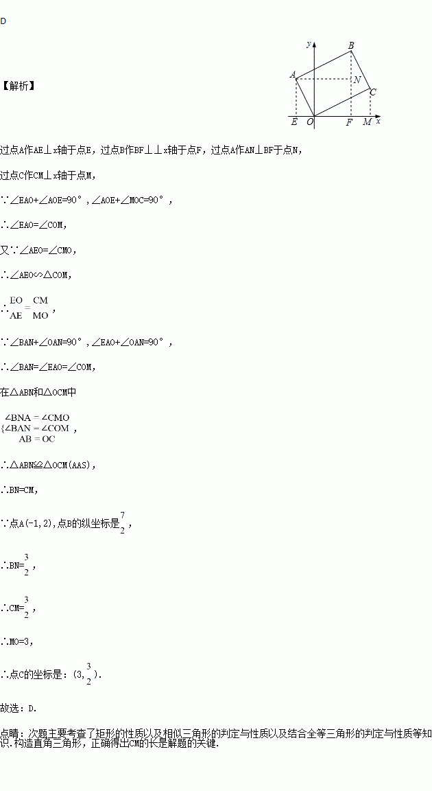 将矩形OABC如图放置,O为原点.若点A(﹣1,2),点B的纵坐标是