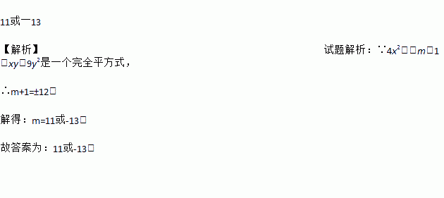 若4x2+(m+1)xy+9y2 是完全平方式,则m的值是___________.