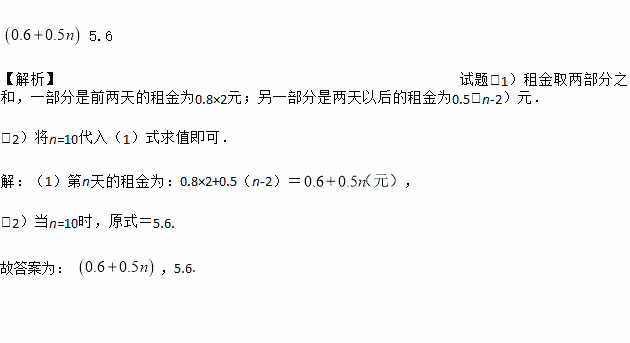 某音像社出租光盘的收费方法是:每张光盘在租后的头两天每天收0.8元,以后每天收0.5元,那么一张光盘在出租后的第n天(n是大于2的自然数)应收租金____元;那么第10天应收租金__________元.