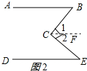 (2)过点C作CF∥AB,由平行线的性质得出∠B=∠1,由已知条件得出∠E=∠2,得出CF∥DE,即可得出结论.