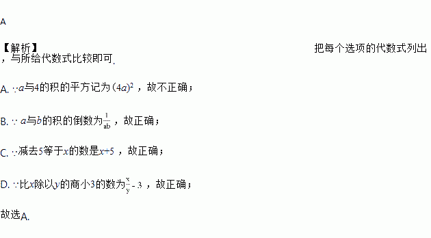 A. a与4的积的平方记为4a2 B. a与b的积的倒数为