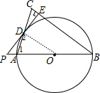 分析 (1)连结OD,如图,根据等腰三角形的性质得∠1=∠C,∠1=∠2,则∠2=∠C,于是可判断OD∥BC,再利用PE⊥BC可得PE⊥OD,然后根据切线的判定定理得到结论;