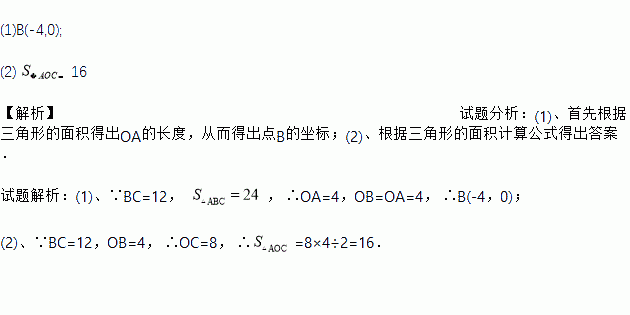 已知,如图在平面直角坐标系中,S△ABC=24,OA=OB,BC=12.