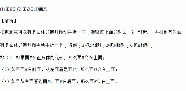 (3)如果从右面看到面D,面E在后面,那么哪一面会在上面?