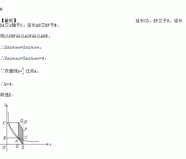 过点A,延长对角线CA交x轴于点E,以AD、AE为边作平行四边形AEFD,若平行四边形AEFD的面积为4,则k值为( )