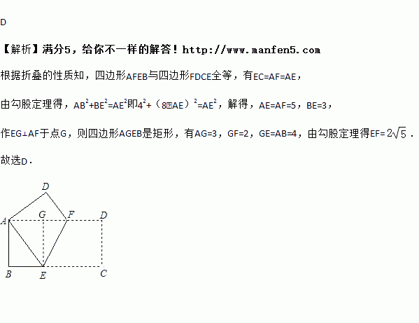 如图,将一个边长为4和8的长方形纸片ABCD折叠,使C点与A点重合,则折痕EF的长是( )