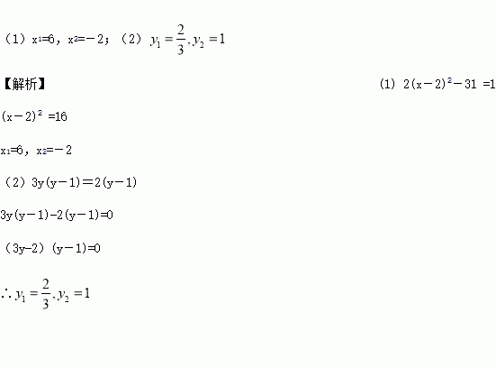 解方程:(1) 2(x-2)2-31 =1;(2) 3y(y-1)=2(y-1)