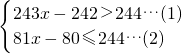 根据运算顺序得到第4次的运算结果和第5次的运算结果,让第4次的运算结果小于244,第5次的运算结果大于244列出不等式求解即可.