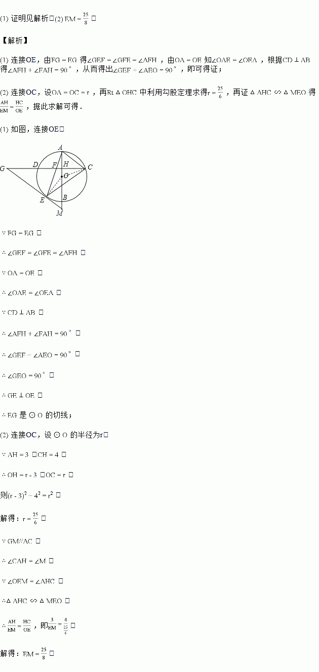 (2)延长AB交GE的延长线于点M,若AH=3,CH=4,求EM的值.