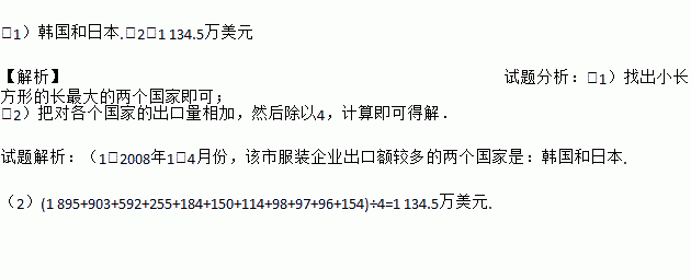 (1)2008年1~4月份,该市服装企业出口额较多的是哪两个国家?
