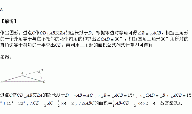 在△ABC中,AB=AC=4,∠B=15°,则△ABC的面积为( )