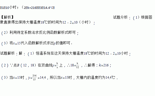 (1)恒温系统在这天保持大棚内温度18℃的时间有多少小时?