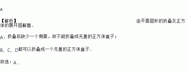 下面图形中,不能折成无盖的正方体盒子的是( )