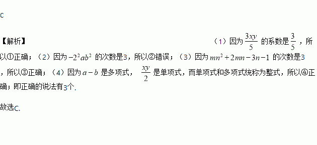 ③多项式mn2+2mn-3n-1的次数是3;