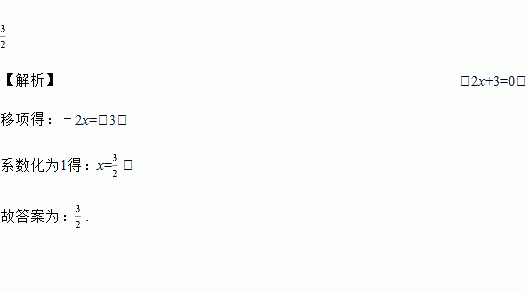 方程﹣2x+3=0的解是x=_____.
