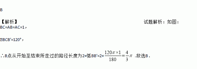 一块等边三角形的木板,边长为1,现将木板沿水平线翻滚(如图),那么B点从开始至结束所走过的路径长度为( )