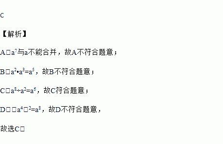 A. a7﹣a B. a2•a3 C. a8÷a2 D. (a4)2