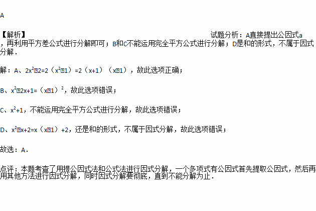 A. 2x2-2=2(x+1)(x-1) B. x2+2x-1=(x-1)2