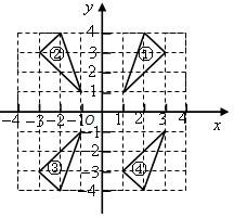 解答:通过观察图可知:关于y称对称的三角形有①和②,关于x轴对称的三角形有②和③.所以关于坐标轴对称的只有2对.故选C.