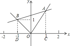 3.分析 作AC⊥x轴于C,BD⊥x轴于D,如图,通过解直角三角形求出OC=1,AC=$\sqrt{3}$,OD=OB=1,则A(1,$\sqrt{3}$),B(-1,1),然后利用待定系数法求一次函数解析式.