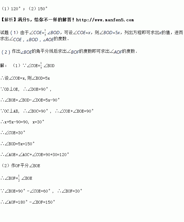 (2)若OF平分∠BOE,求∠AOF的度数.
