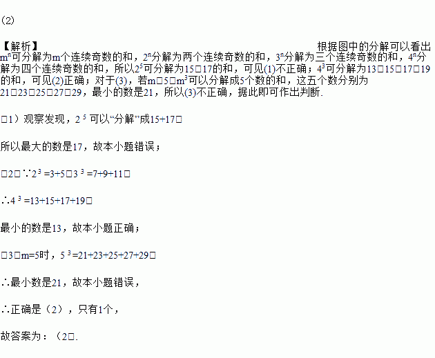的“分解”中最小的数是23,则等于5.其中正确的是 .![]()