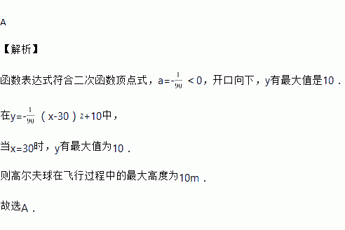 一个运动员打尔夫球,若球的飞行高度y(m)与水平距离x(m)之间的函数表达式为