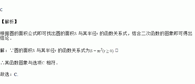 圆的面积与其半径的函数关系用图象表示大致是( )