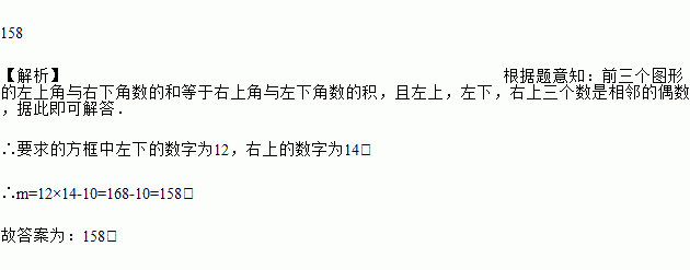 仔细观察前三个正方形,填在正方形内的四个数之间都存在着一定的规律.根据这种规律,请你写出最后一个正方形内字母m的值:____________.