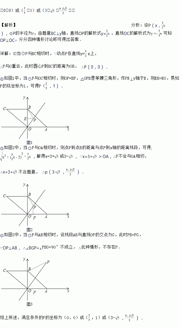 x上运动,以点P为圆心,PB长为半径的⊙P随点P运动,当⊙P与四边形ABCO的边所在直线相切时,P点的坐标为_____.