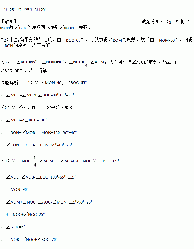 (3)将三角板MON绕点O逆时针旋转至图3时,∠NOC=