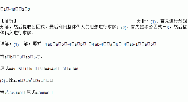 (1)已知a+b=-3,ab=5,求多项式4a2b+4ab2-4a-4b的值;