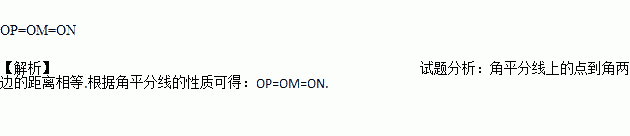 已知:如图,在ΔABC中,BD、CE分别平分∠ABC、∠ACB,且BD、CE交于点O,过O作OP⊥BC于P,OM⊥AB于M,ON⊥AC于N,则OP、OM、ON的大小关系为____________.