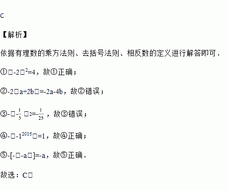 ①(-2)2=4;②-2(a+2b)=-2a+4b; ③-=;④-(-12 016)=1; ⑤-[-(-a)]=-a.