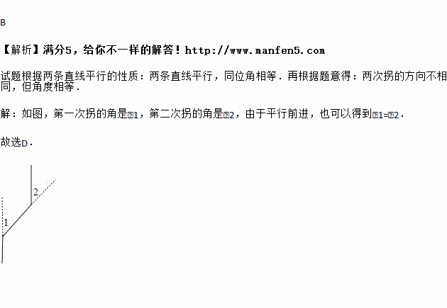 一辆汽车在笔直的公路上行驶,两次拐弯后,仍在原来的方向上平行前进,那么两次拐弯的角度是( )