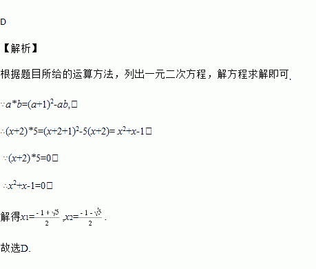 若在实数范围内定义一种运算“*”,使a*b=(a+1)2-ab,则方程(x+2)*5=0的解为( )