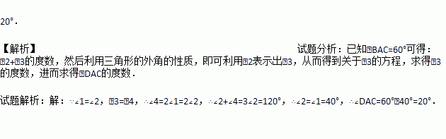 如图,在△ABC中,D是BC边上一点,且∠1=∠2,∠3=∠4,∠BAC=60°,求∠DAC的度数.