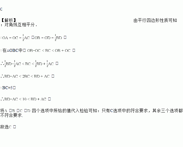 如图,在平行四边形中,、交于点,若长为,则、的长可能为( ).