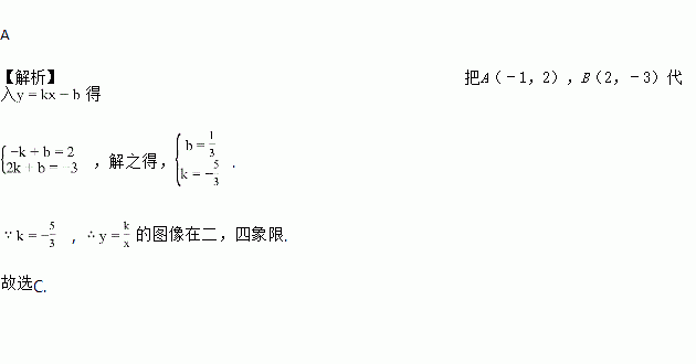 若点A(1,2),B(﹣2,﹣3)在直线y=kx+b上,则函数y=的图象在( )