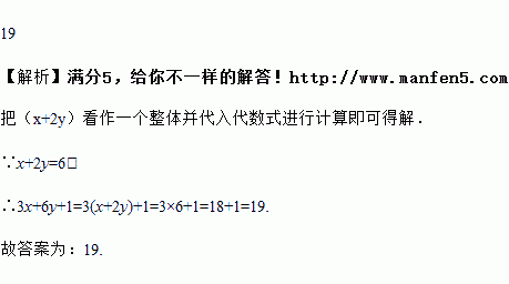 已知代数式x+2y的值是6,则代数式3x+6y+1的值是________.
