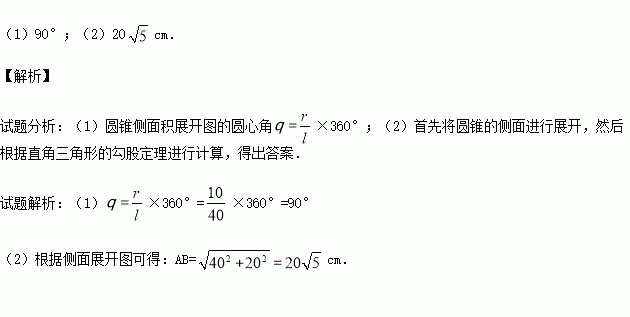 如图所示,已知圆锥底面半径r=10cm,母线长为40cm.
