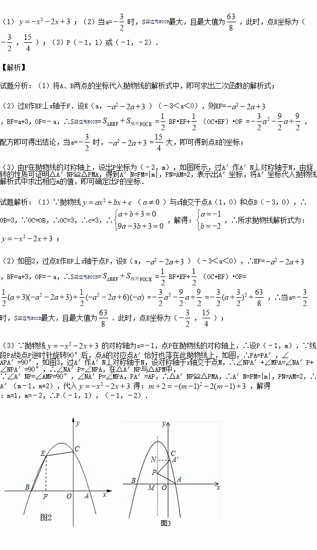 (3)点P在抛物线的对称轴上,若线段PA绕点P逆时针旋转90°后,点A的对应点A′恰好也落在此抛物线上,求点P的坐标.