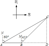 点评:本题主要考查了方向角问题.此题难度适中,解题的关键是构造直角三角形,再解直角三角形,注意数形结合思想与方程思想的应用.