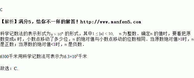 C. 6.3×103千米 D. 6.3×104千米