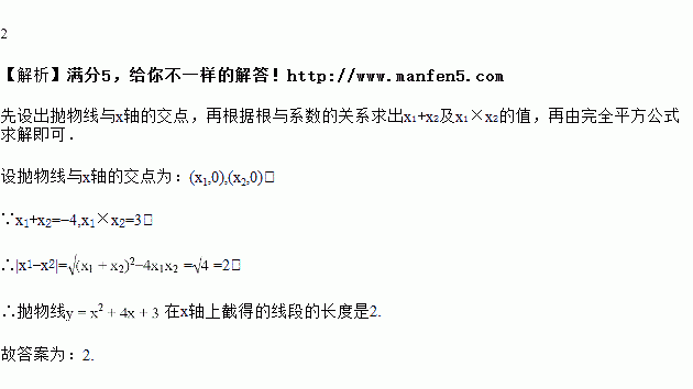 抛物线在轴上截得的线段的长度是________.