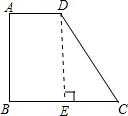 分析:过点D作DE⊥BC,垂足为E,根据60°角的正弦与余弦求出DE,CE的长度,然后即可求出BE,也就是AD的长度,再根据梯形的面积公式求解即可.