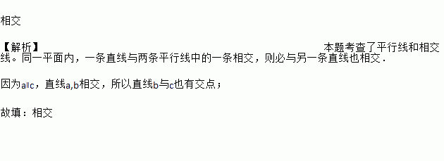 在同一平面内,直线a,b相交于P,若a∥c,则b与c的位置关系是________ .