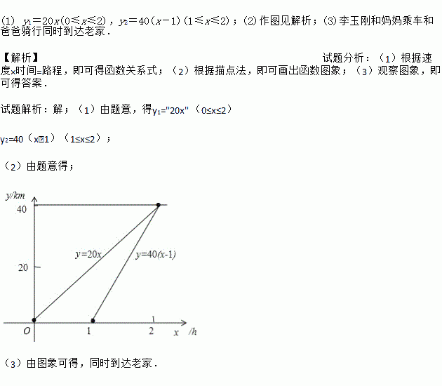星期天,李玉刚同学随爸爸妈妈回老家探望爷爷奶奶,爸爸8:30骑自行车先走,平均每小时骑行20km;李玉刚同学和妈妈9:30乘公交车后行,公交车平均速度是40km/h.爸爸的骑行路线与李玉刚同学和妈妈的乘车路线相同,路程均为40km.设爸爸骑行时间为x(h).