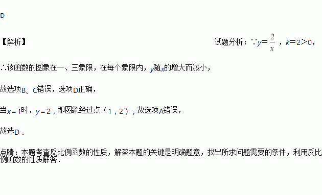 对于反比例函数,下列说法正确的是( )