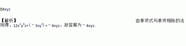计算:12x2y3z÷(﹣3xy2)=_____.